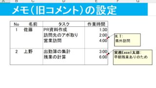 メモの挿入、表示/非表示切替、ユーザー名の変更、印刷有無の設定方法