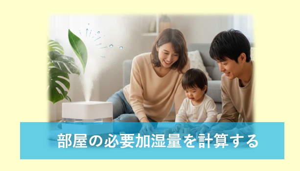 正しい加湿器の選び方 未分類 2026.03.08 部屋の大きさと空調前の湿度により必要な加湿量を調べる方法 帰宅時の温度と湿度により部屋にある水蒸気量を計算 エアコンを付けた後の温度上昇により降下する湿度を計算 理想湿度50%を維持するために必要な加湿量を計算